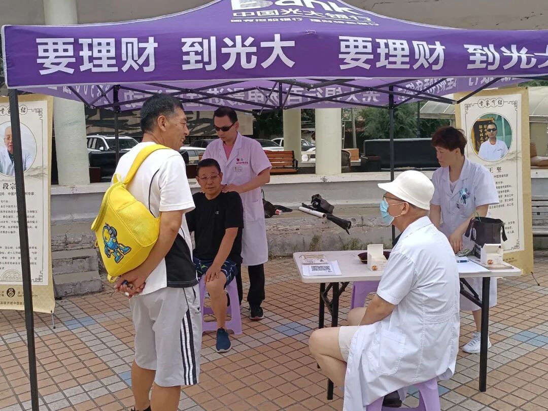 为进一步提高居民健康生活品质,提升居民对自身健康的认知,值此中国*********成立100周年、《中华人民共和国中医药法》实施四周年之际,7月29日,福济德中医院携手光大银行宣化支行,共同来到了中植社区开展“健康义诊进社区,服务群众暖人心”活动。
